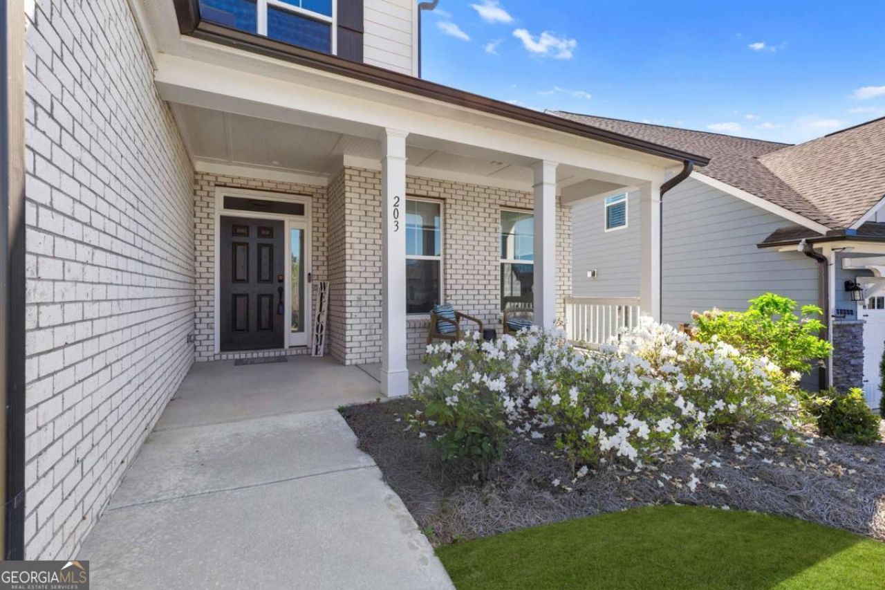 0PEN H0USE SUN. 4/19 FROM 2-4PM... Welcome to 203 Sunshower Ridge, a stunning newer construction home located in the desirable Sunrise Cove neighborhood of Great Sky, offering beautiful views of the reservoir and an exceptional blend of style, comfort, and convenience. Built in 2023, this thoughtfully designed home features nearly 2,800 square feet with 4 bedrooms and 3.5 bathrooms, including a highly sought-after primary suite on the main level. Step inside to an inviting open floor plan highlighted by rich pecan hardwood floors throughout the main living areas, a cozy fireplace in the family room, and an abundance of natural light. The spacious kitchen is the heart of the home, featuring Frigidaire Gallery stainless steel appliances, a gas cooktop, a large island ideal for gathering, and seamless flow into the dining area and living space. Just off the main living area, a dedicated office provides the perfect space for working from home or a quiet retreat. The dining area opens to an extended back patio overlooking the reservoir, creating a peaceful outdoor setting perfect for relaxing or entertaining. Enjoy additional outdoor living with a covered front porch and covered back patio. Upstairs, you will find generously sized secondary bedrooms, two full bathrooms, and a versatile media room offering additional living or entertainment space. New high-end carpet enhances the upper level, while updated light fixtures throughout the home add a modern touch. Additional features include a two-car garage, spacious bedrooms, and a well-designed layout that balances comfort and functionality. Ideally located just a short drive to I-575 and less than 10 minutes to Downtown Canton, The Mill on Etowah, and a variety of shopping and dining options, this home offers both convenience and lifestyle. Plus, enjoy the added benefit of being less than half a mile from the community amenities, making it easy to take advantage of everything Great Sky has to offer. Don't miss the opportunity to own this beautifully appointed home with scenic views in one of Canton's most sought-after communities.
